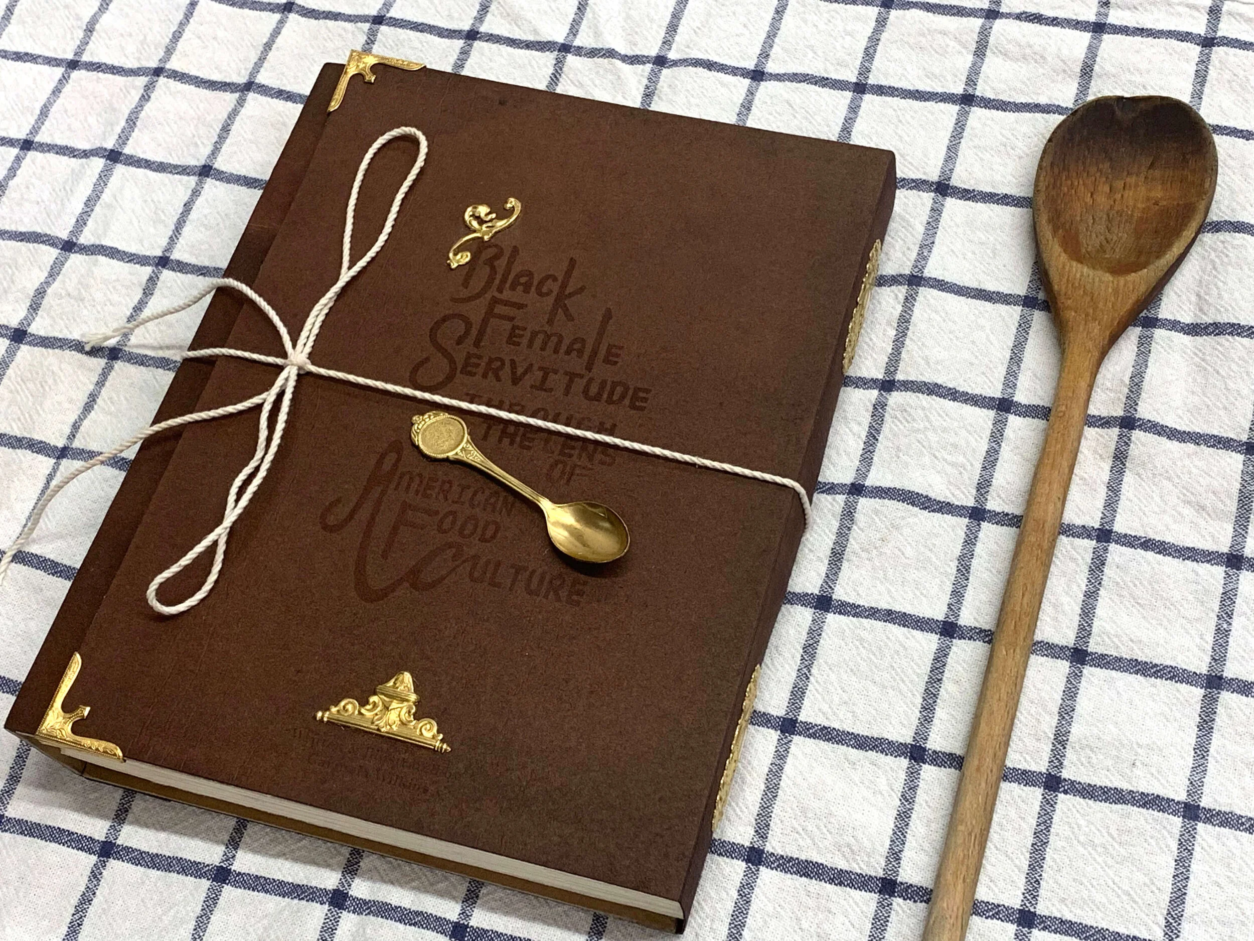 “Through visual and written outputs, this project aims to archive the narratives of black women historically entrapped in service positions by exploring the relationship between female house slaves and the master's household where she provides nourishment. In the consumption of her bodywork, the enslaved black woman is forced to establish a sense of identity, a presence that has embedded itself in modern-day American foodscapes. The book cover was hand-lettered alongside and the book and pages were made by hand.”